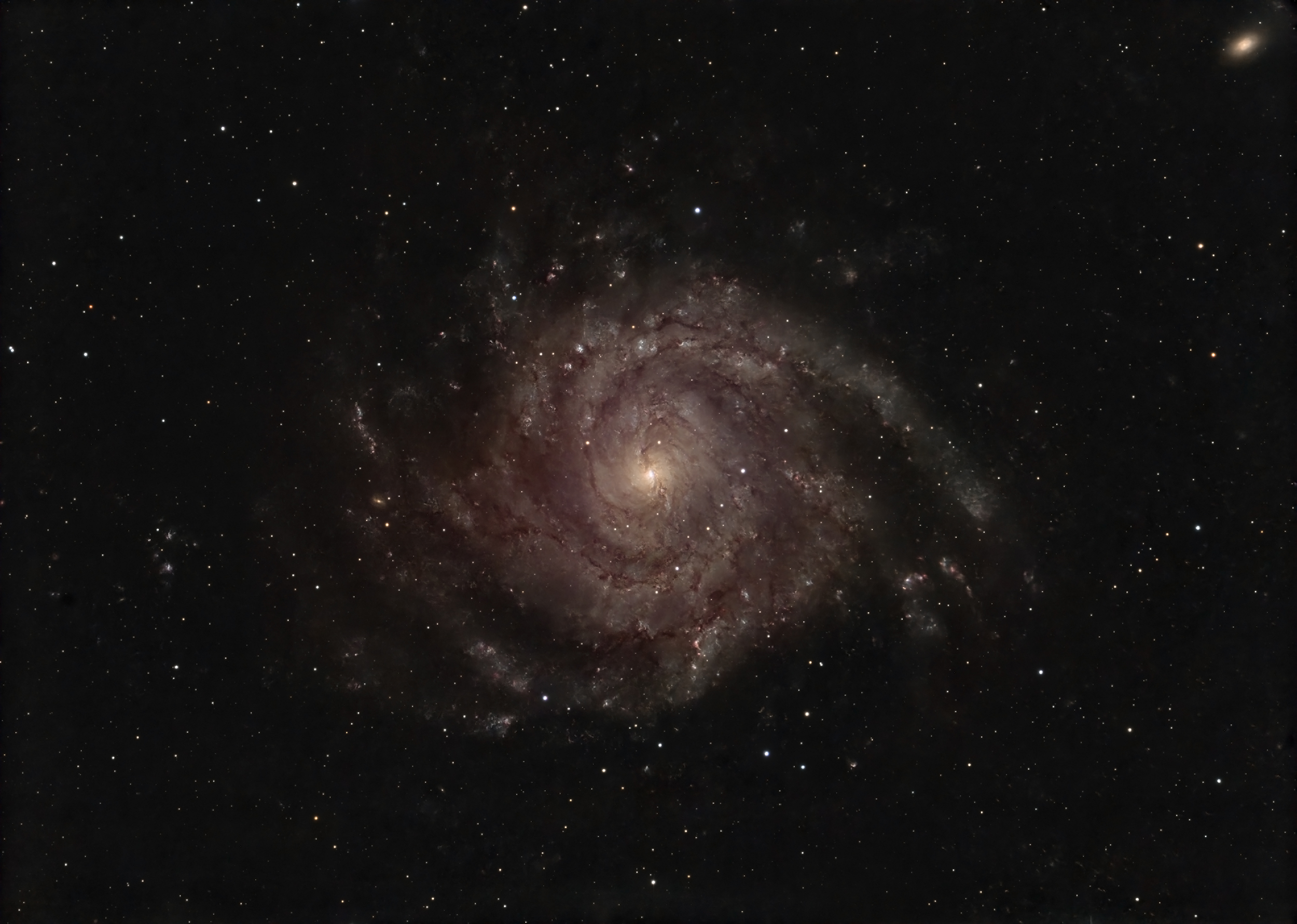 IC 342 ist eine Spiralgalaxie in rund 11 Millionen Lichtjahren Entfernung im Sternbild Giraffe. Da sie sich nahe des Himmelsäquators befindet trübt relativ viel Staub und Gas unserer eigenen Galaxie, der Milchstraße, unseren Blick auf sie. Mit 60.000 Lichtjahren Durchmesser ist sie nur etwas halb so groß wie unsere Galaxie.