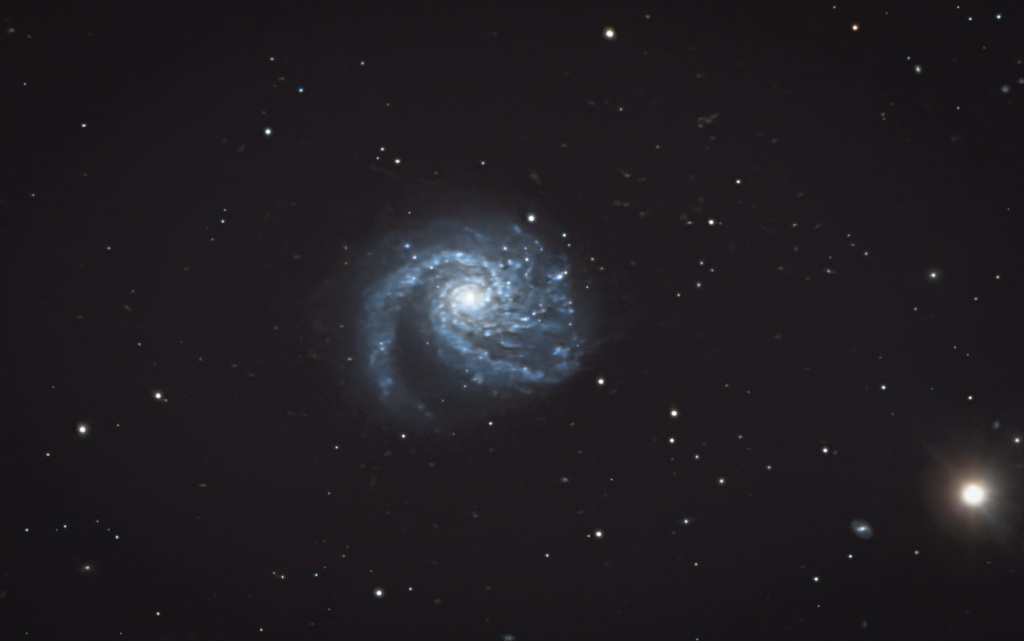 Schneckenhäuser. Hurrikans. Sonnenblumen. Die Natur liebt die Spiralform. In allen Größenordnungen. Bis zu den 100.000 Lichtjahren großen Spiralgalaxien. Die zweite je entdeckte Spiralform wurde bei Messier 99 festgestellt. The dritte Earl von Parsons hat sie im Jahr mit dem damals größten Teleskop, einem Meter Fernrohr auf seinem Anwesen in Irland im Jahr 1846 entdeckt, nach der berühmten Whirlpoolgalaxie Messier 51. Er schreibt über seine Entdeckung: „Spirale mit einem hellen Stern darüber; ein dünner Teil des Nebels reicht über diesen Stern hinaus. Die Hauptspirale liegt unten und ist rechtsdrehend.“