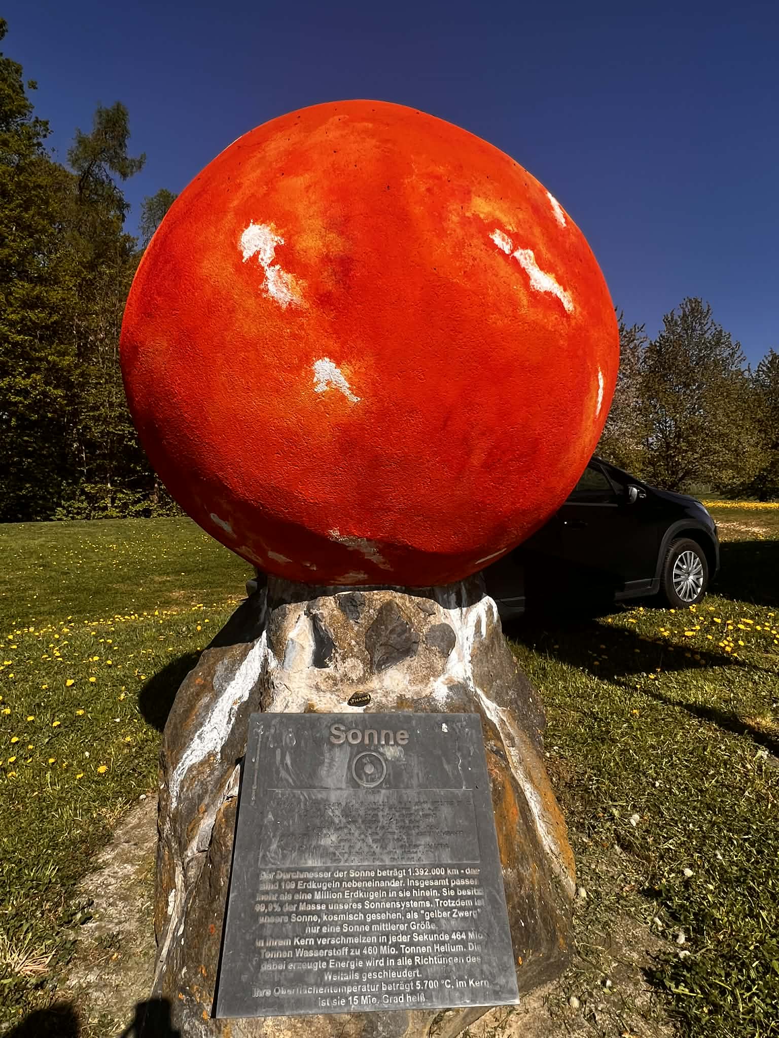 Für uns wäre noch verbesserungswürdig den Planetenwanderweg mit den Stationen mit einem Informationsblatt an die Wanderer bei uns weiterzugeben, schließlich erwandern sie die Strecke im Maßstab 1: 1 Milliarde von der Sonnenstation auf der Sternwarte bis zum Pluto bei Schloß Kornberg in doppelter Lichtgeschwindigkeit!