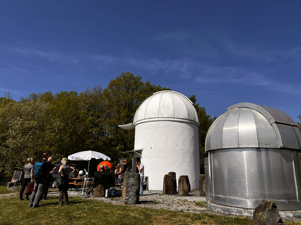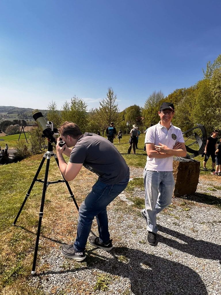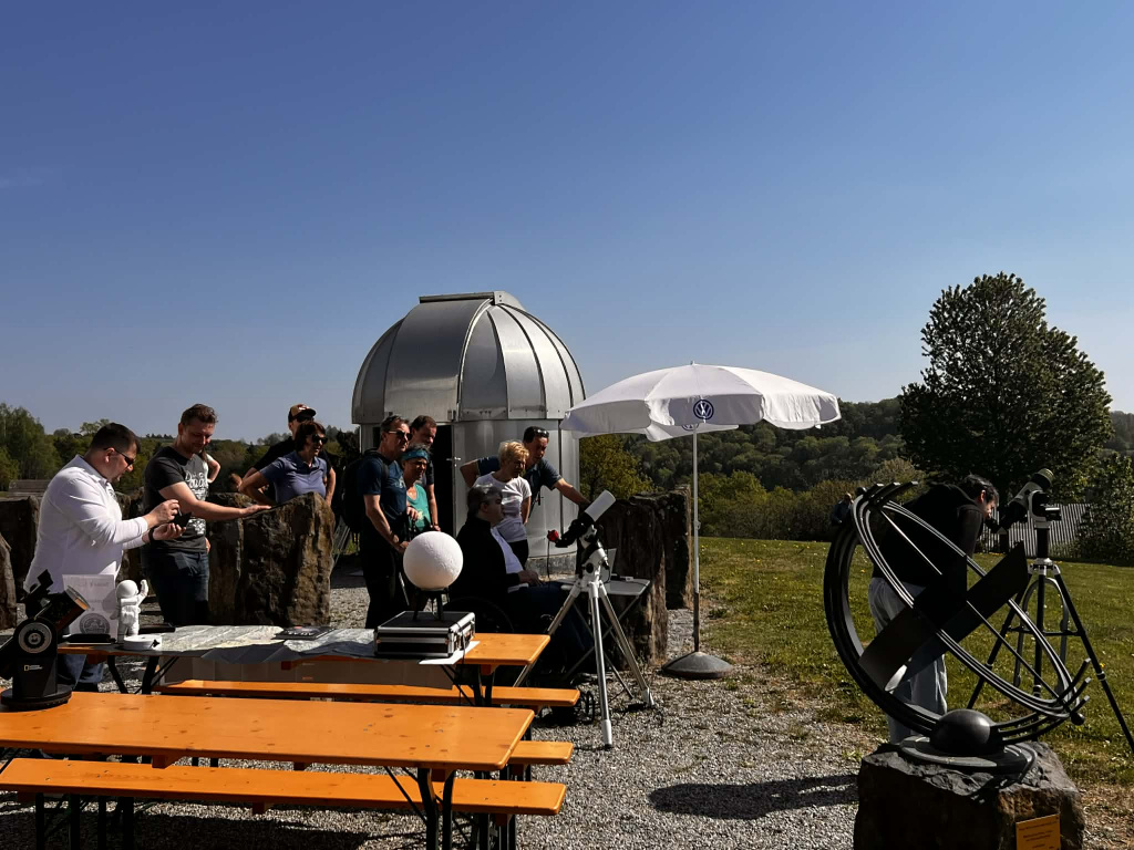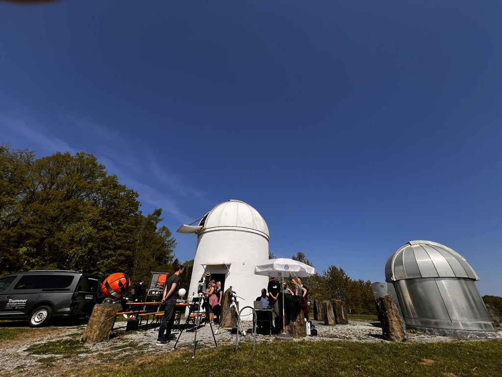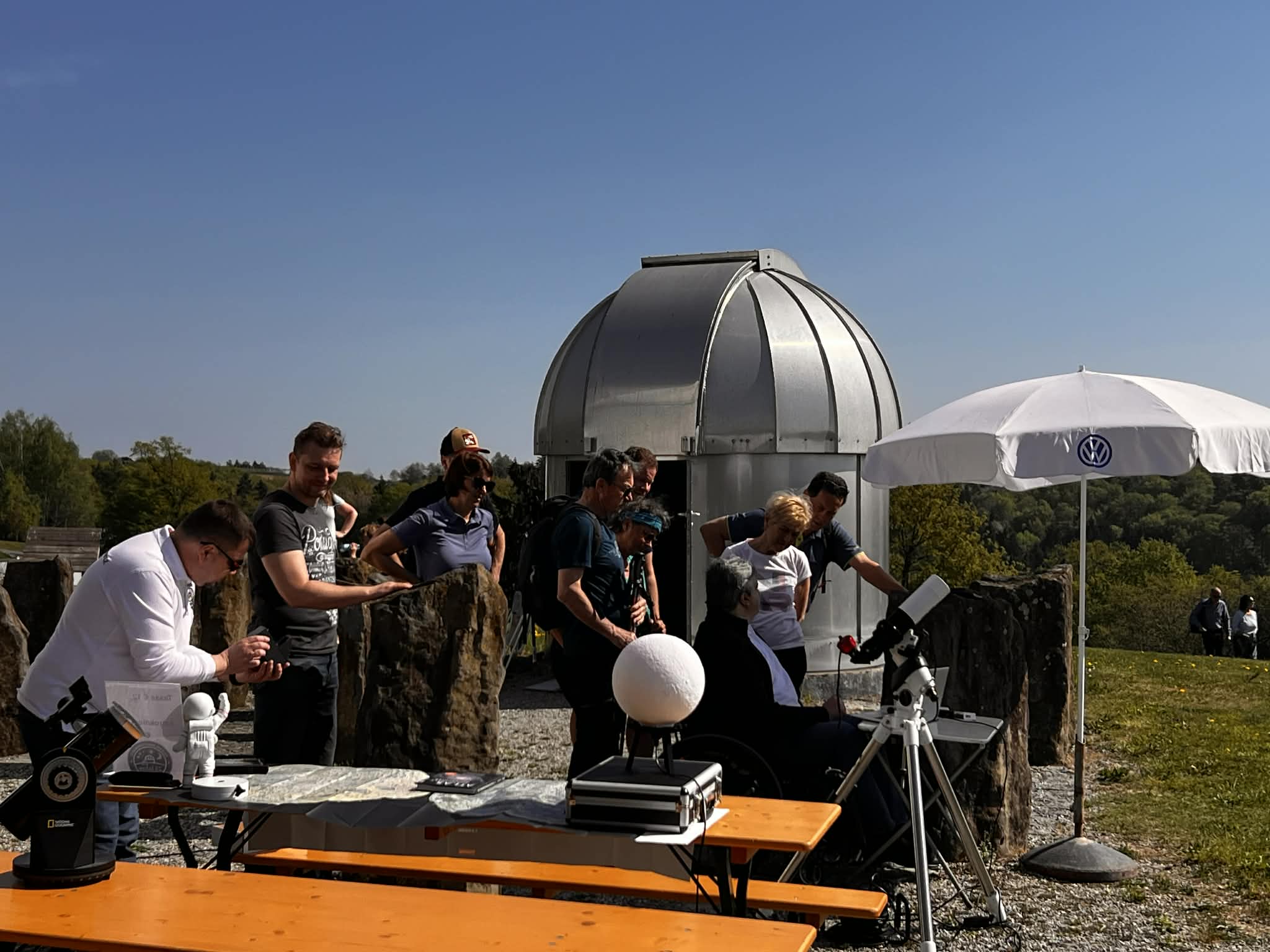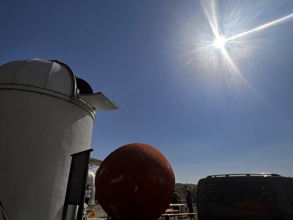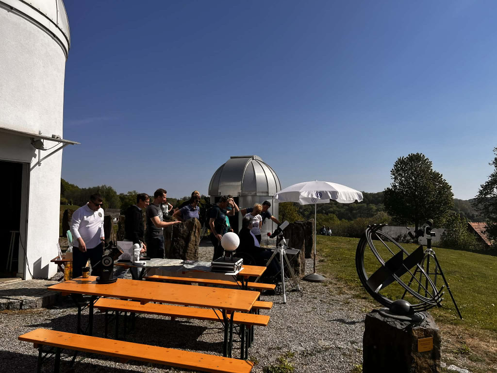 Wir hatten von 9.30 bis 14.00 dauernd Besucher. Wir hatten zu viert ganz schön zu tun, um alle Fragen der Gipfelstürmer zu beantworten. Wir präsentierten die Sonne mit 3 Teleskopen, erklärten die Funktionsweise der Fernrohre und sprachen über unsere Abendführungen. Es gab sogar einen Raketenstart!