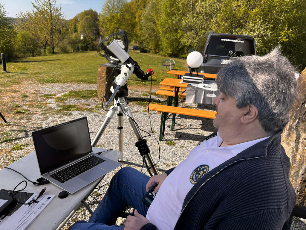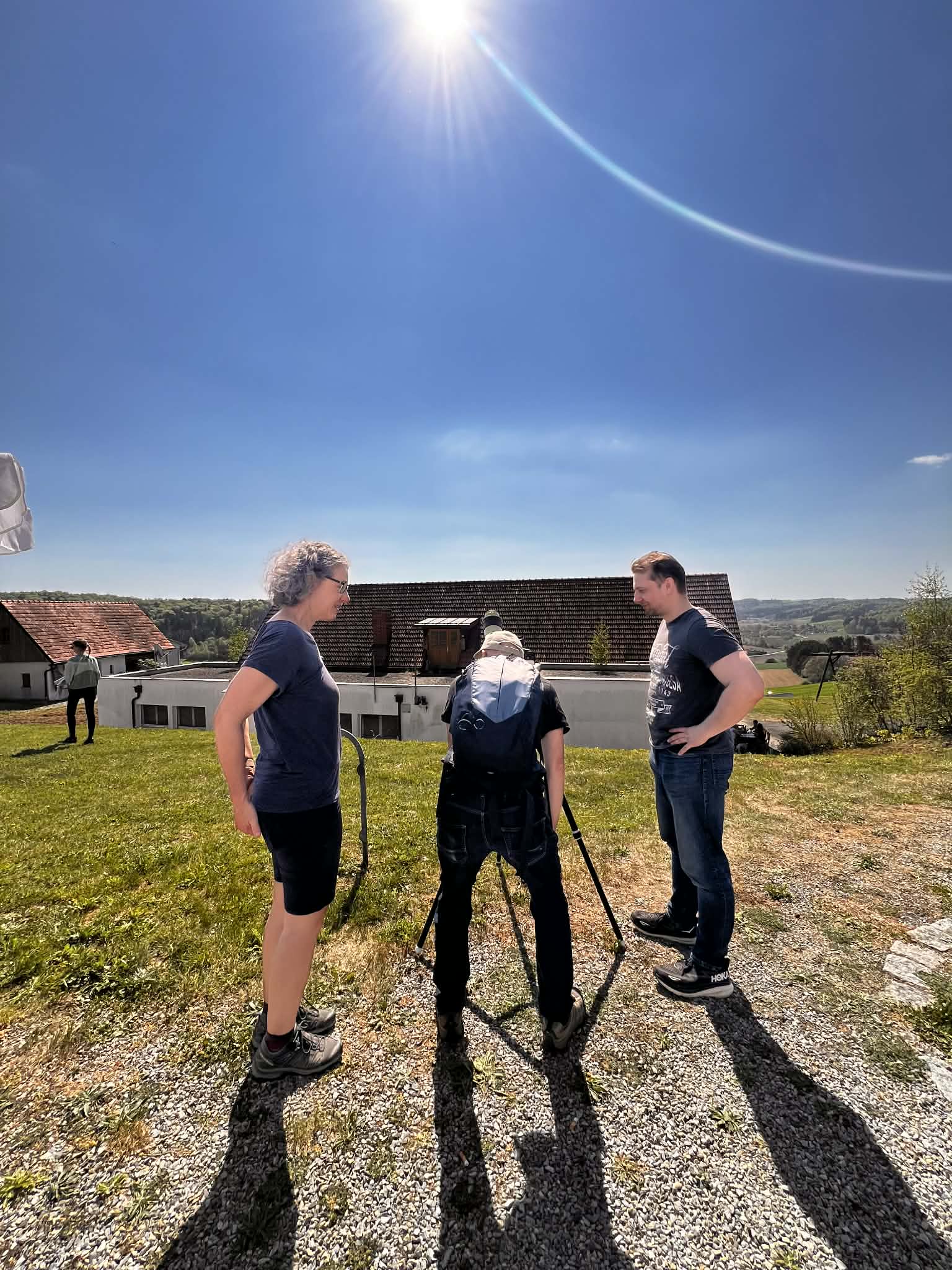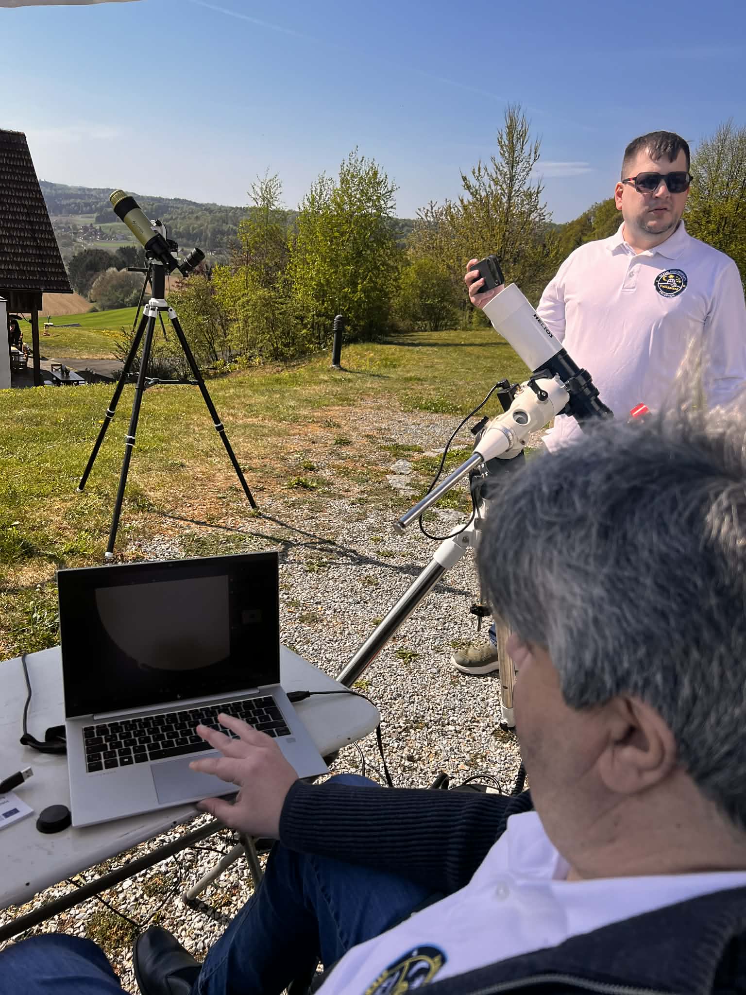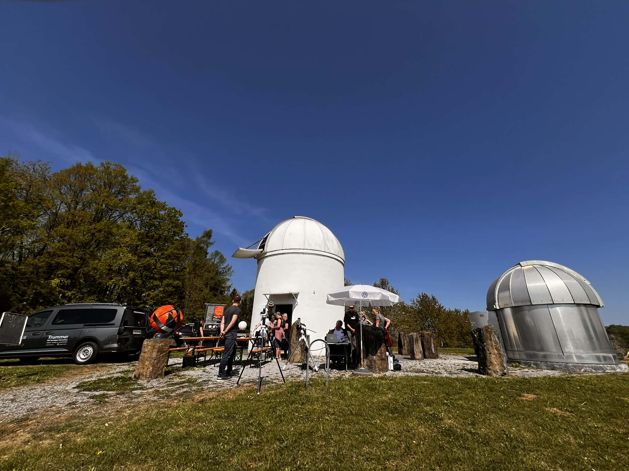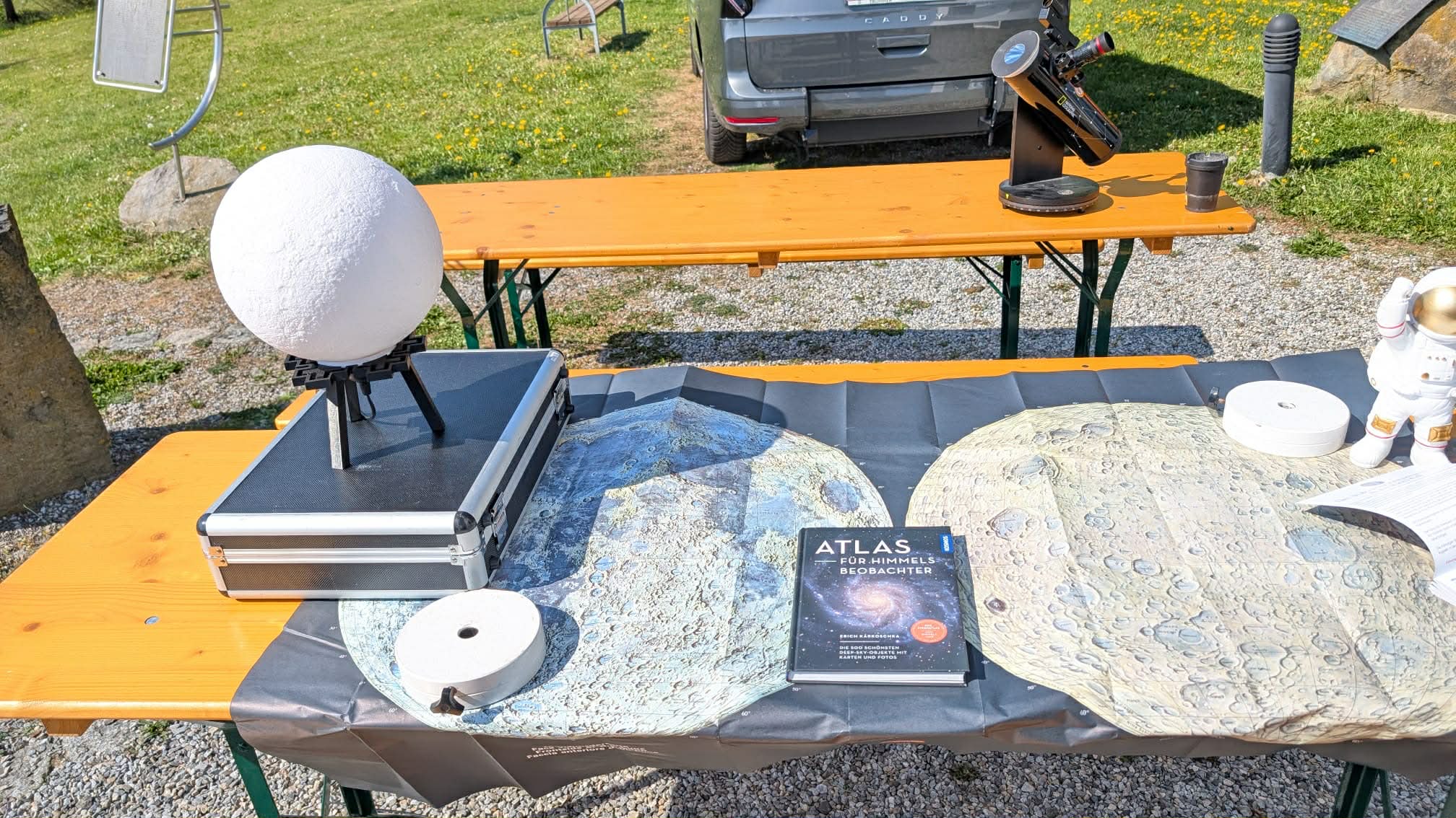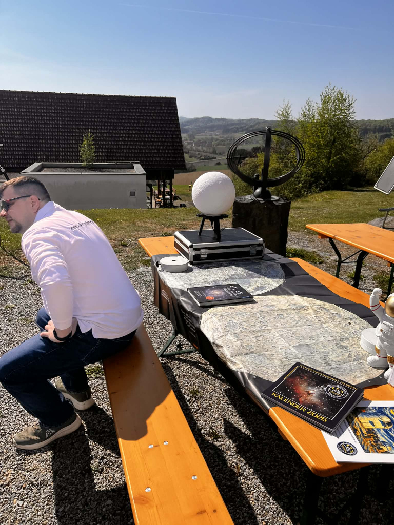 Wir hatten von 9.30 bis 14.00 dauernd Besucher. Wir hatten zu viert ganz schön zu tun, um alle Fragen der Gipfelstürmer zu beantworten. Wir präsentierten die Sonne mit 3 Teleskopen, erklärten die Funktionsweise der Fernrohre und sprachen über unsere Abendführungen. Es gab sogar einen Raketenstart!
