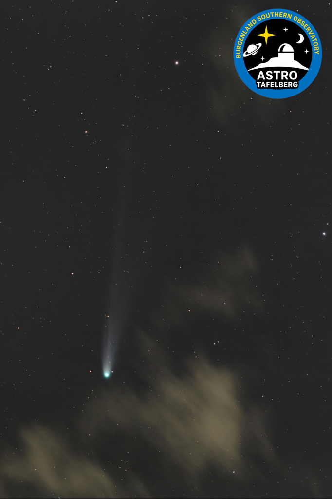Leider spielt das Wetter bei uns allabendlich weiterhin nicht mit – nur für einen kurzen Augenblick gibt es freie Sicht auf den Kometen.